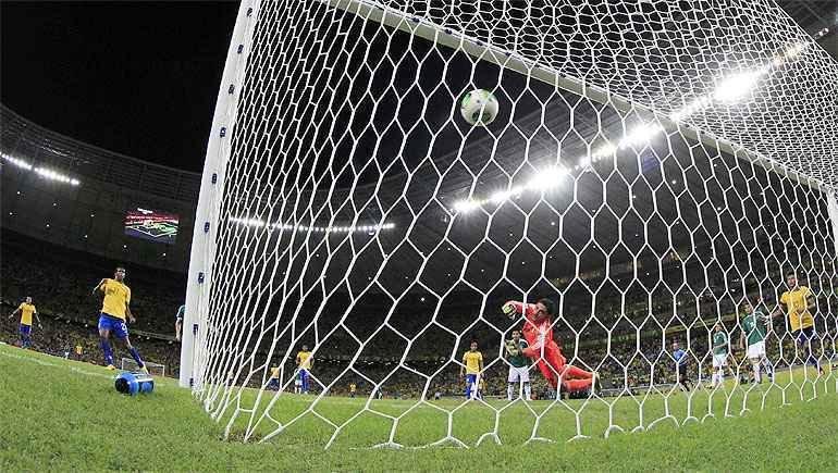 Local: Arena Castelão, em Fortaleza (CE); Árbitro: Howard Webb (Inglaterra). Assistentes: Michael Mullarkey (Inglaterra) e Darren Cann (Inglaterra). Gols: Neymar (aos 9 min 1º tempo) e Jô (46 min do 2º tempo). Cartões amarelos: Thiago Silva e Daniel Alves (B); Guardado e Herrera (M). Público: 61 mil torcedores. Renda: ?